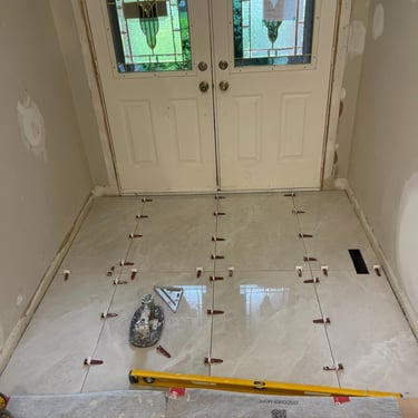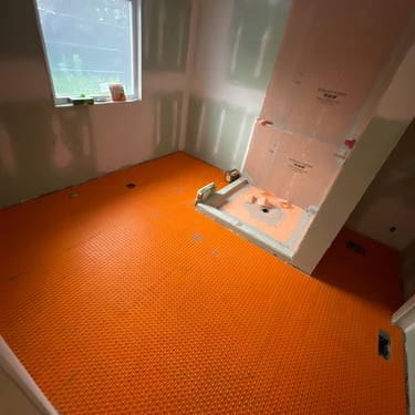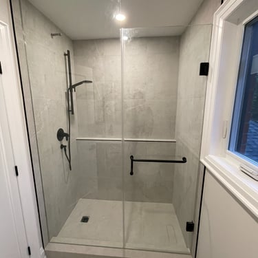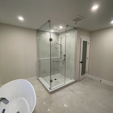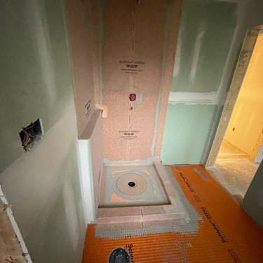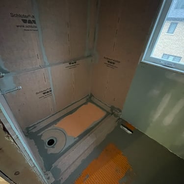 Project Kleinburg involved a comprehensive full-home tiling scope, executed with a focus on durability, precision, and visual continuity. Three custom showers were constructed using a complete Schluter waterproofing system, ensuring long-term performance beneath refined finishes. Large-format tile was installed throughout floors and walls to create a seamless, architectural flow, with integrated shelf walls incorporated for both function and clean detailing. The project also included tiling of the front foyer, powder room, and main-floor laundry, resulting in a cohesive material language carried consistently throughout the home.