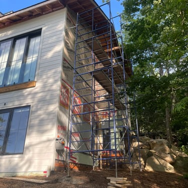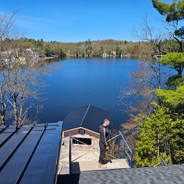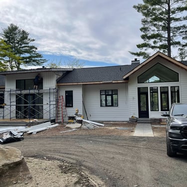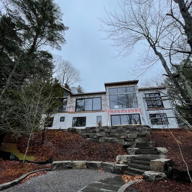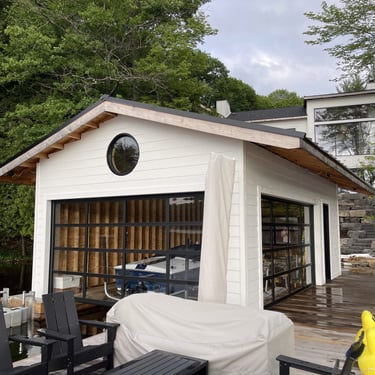 Project Muskoka involved the complete exterior siding of a lakeside cottage, including the main residence and boathouse. The scope required careful planning and execution due to challenging site conditions, including steep rock formations and limited access along the shoreline. All exterior cladding was installed with precision to ensure durability against the elements while maintaining a clean, cohesive aesthetic across all structures. The result is a refined exterior that enhances the cottage’s architectural presence while standing up to the demands of a rugged waterfront environment.